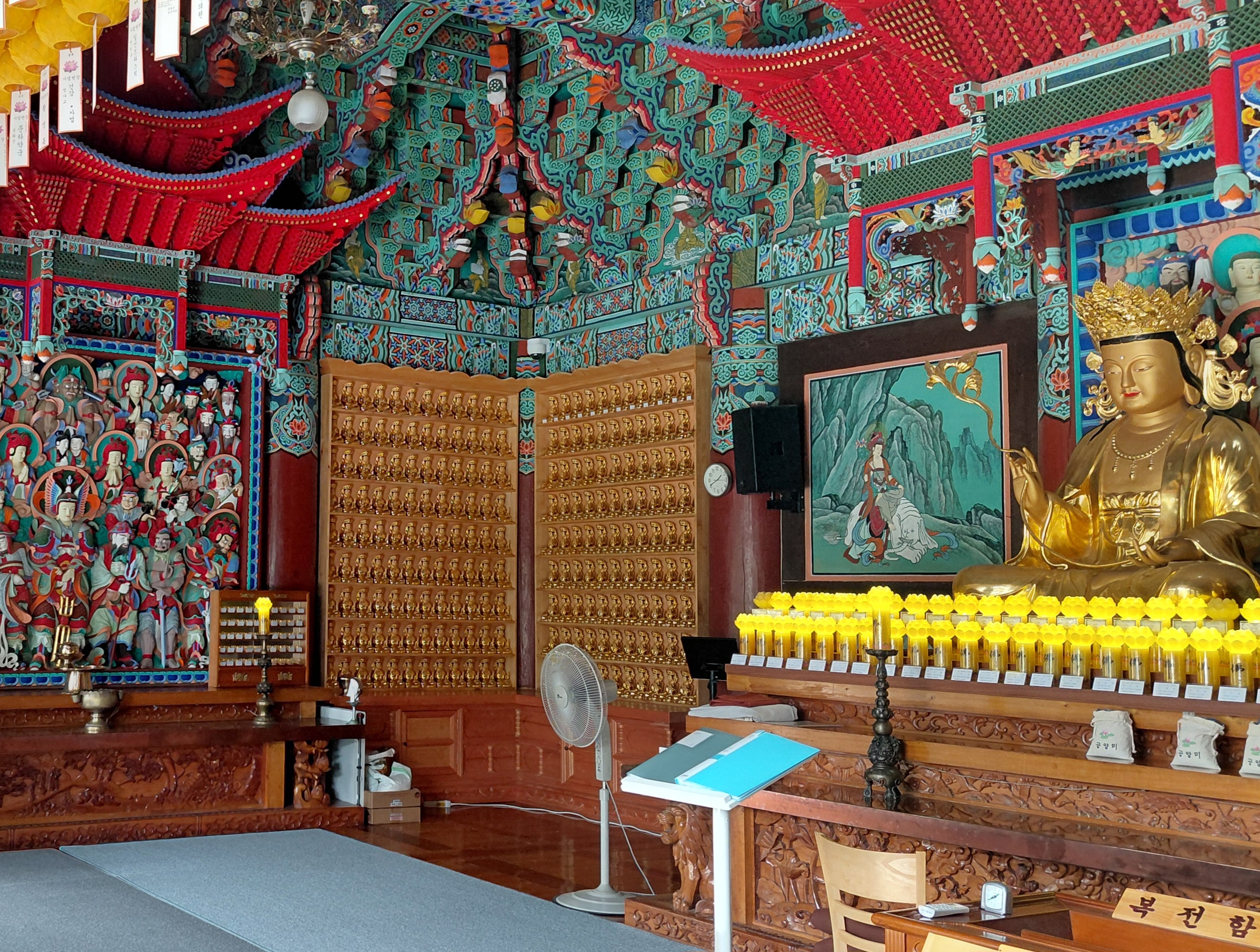 석굴사 초기엔 바로 앞에 전각이 있었으나 소실되고 후에 중수된 것이라고 한다. 이곳은 비로자나불을 모신 전각으로 무한한 빛을 두루 비추는 부처님이며 과거, 현재, 미래를 모두 관장하시는 진리의 법신불이시다. 대 적광전 또는 대 광명전이라고도 부른다.
