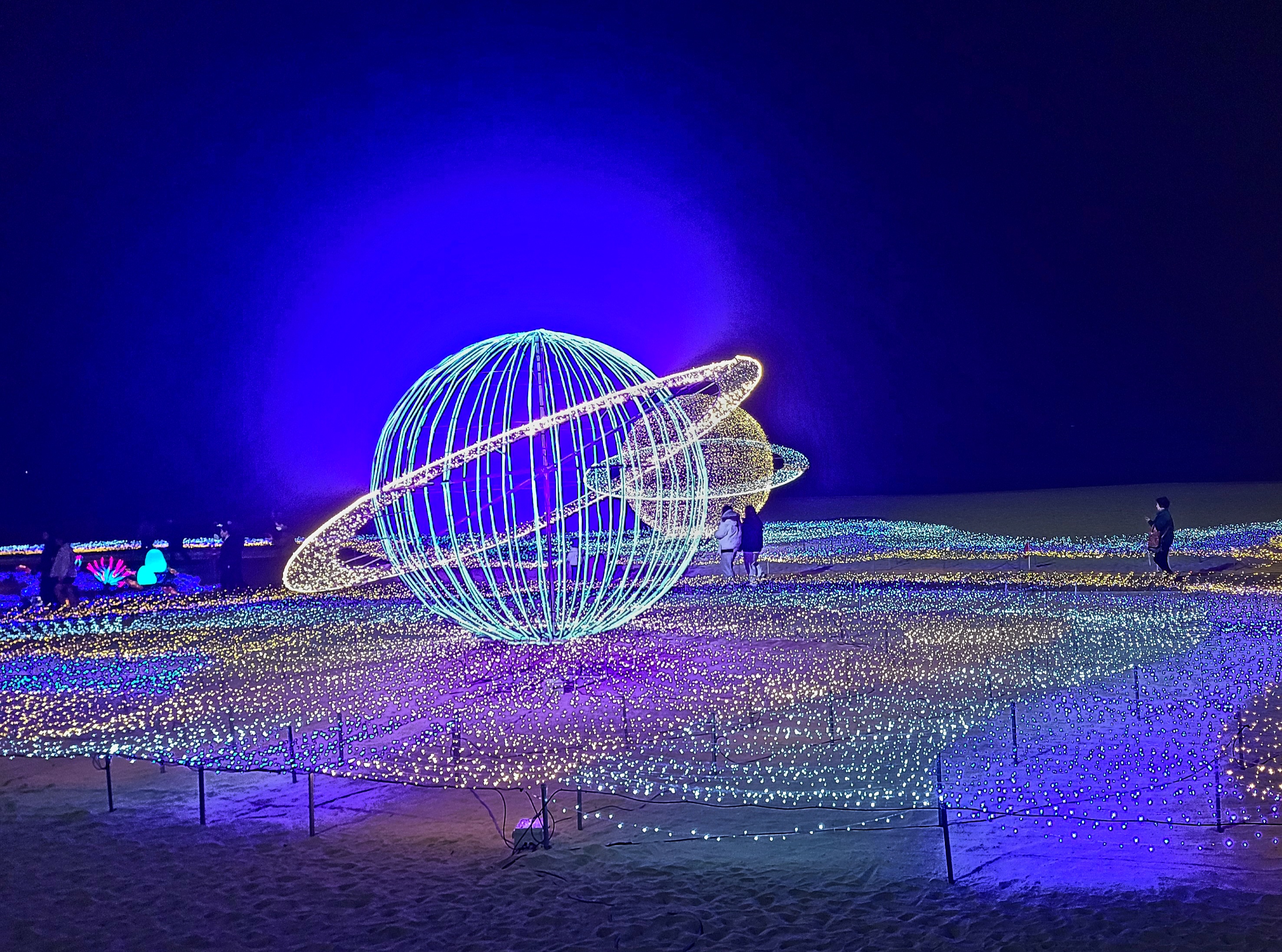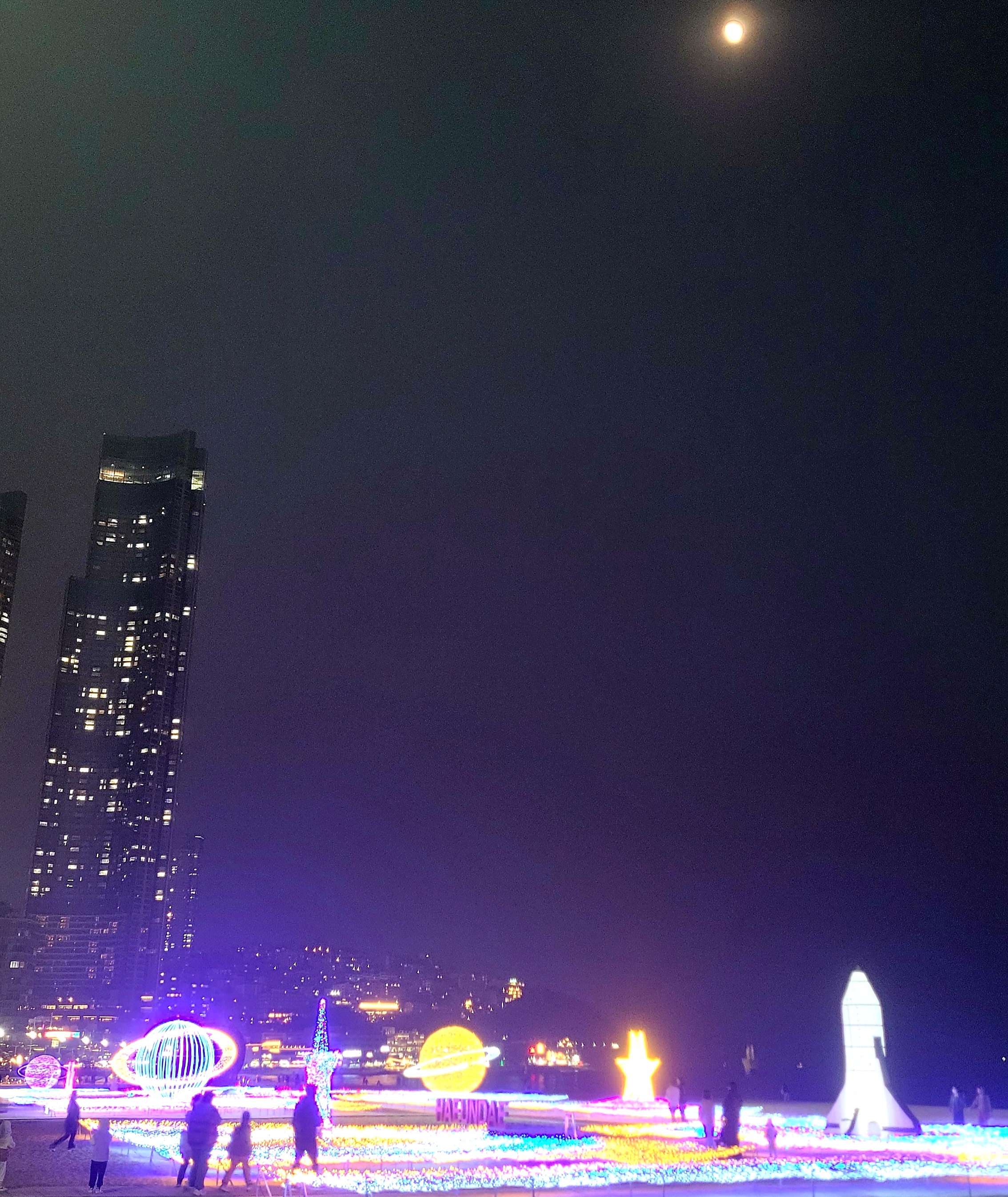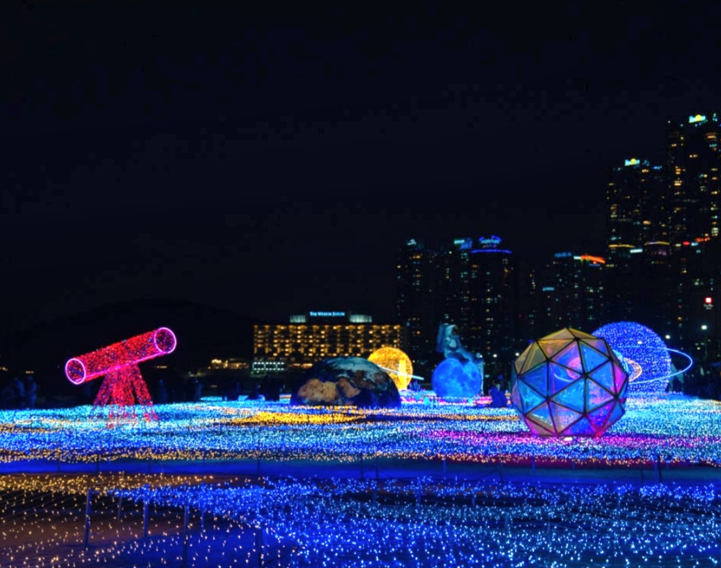 해운대 빛축제가 11월 29일 토요일에 개막되었다. 한 달여 동안 준비하는 모습을 보이더니 아름답게 빛나는 별의 물결을 만들어 놓았다. 기간은 1월 18일까지이니 주말을 비껴 방문하시는 것이 좋을듯하다. 평일인데도 너무 많은 사람으로 사진 찍기가 곤란할 정도였다. 이제 빛축제사진으로 실제를 위한 워밍업을 하시길 바란다. 이른바 별의 물결이라 명명한 빛축제는 사진보다는 눈으로 보는 것이 더욱더 아름답다.