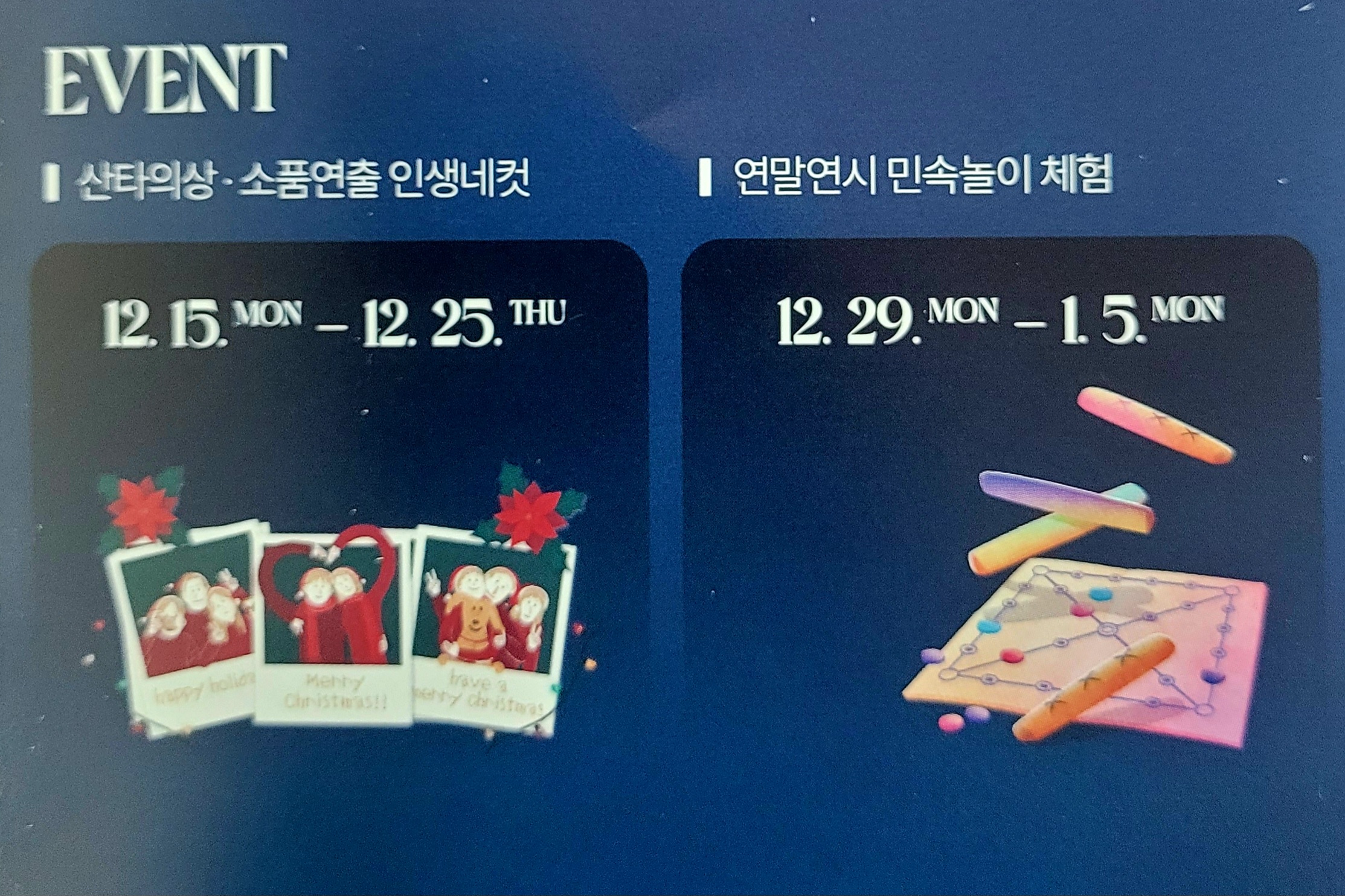 앞에 있는 미러볼과 작은 입체물은 손으로 건들면 색이 변하며 지구본에서는 홀로그램으로 태풍이 올라오는 모습과 지구가 변하해 온 모습, 산타 할아버지가 춤추는 등 여러 가지 홀로그램을 띄우고 있다.