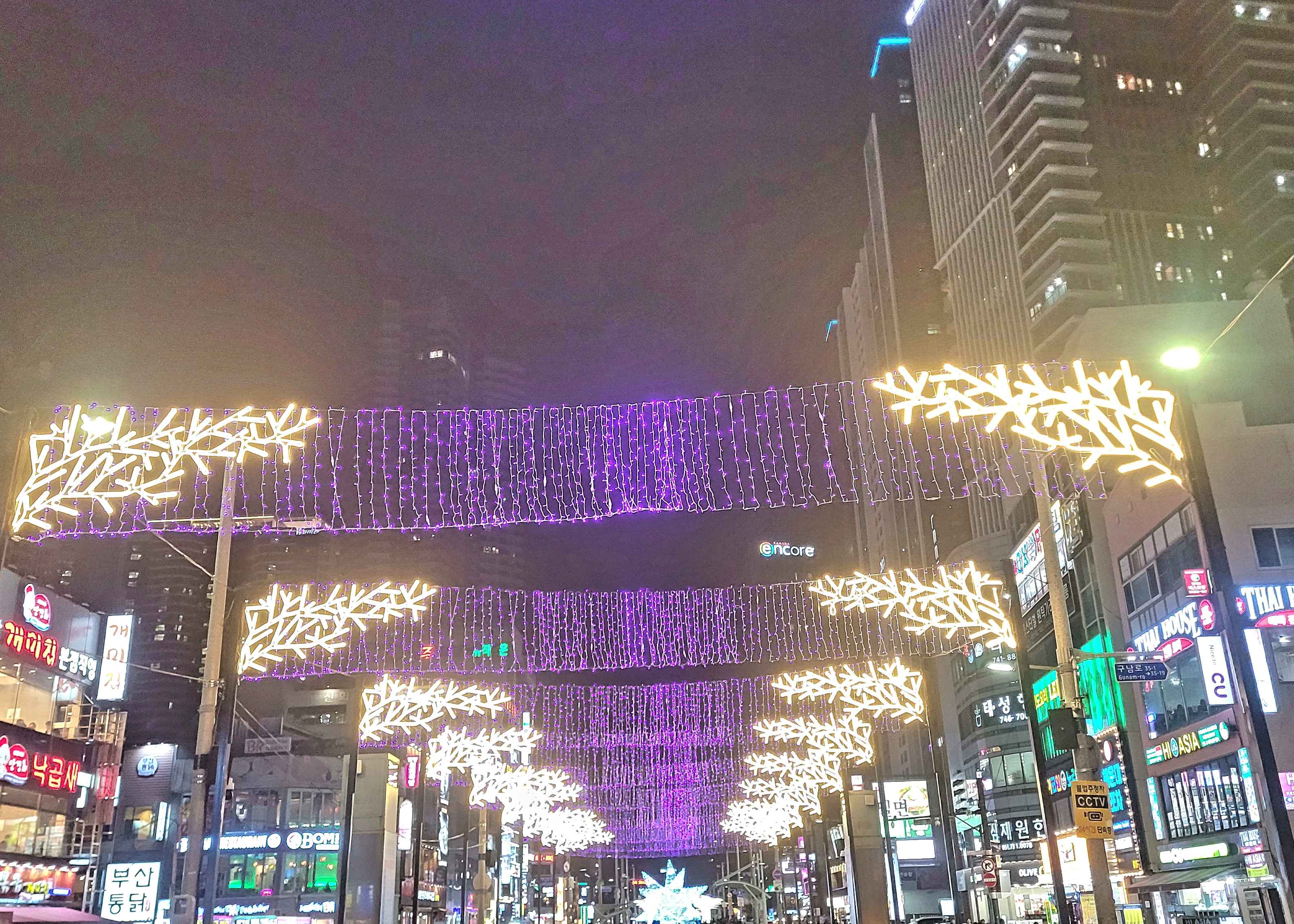 낮에는 잘 모르고 다니는 길이지만 밤에는 보석을 뿌린 듯이 아름답게 빛나고 있다.