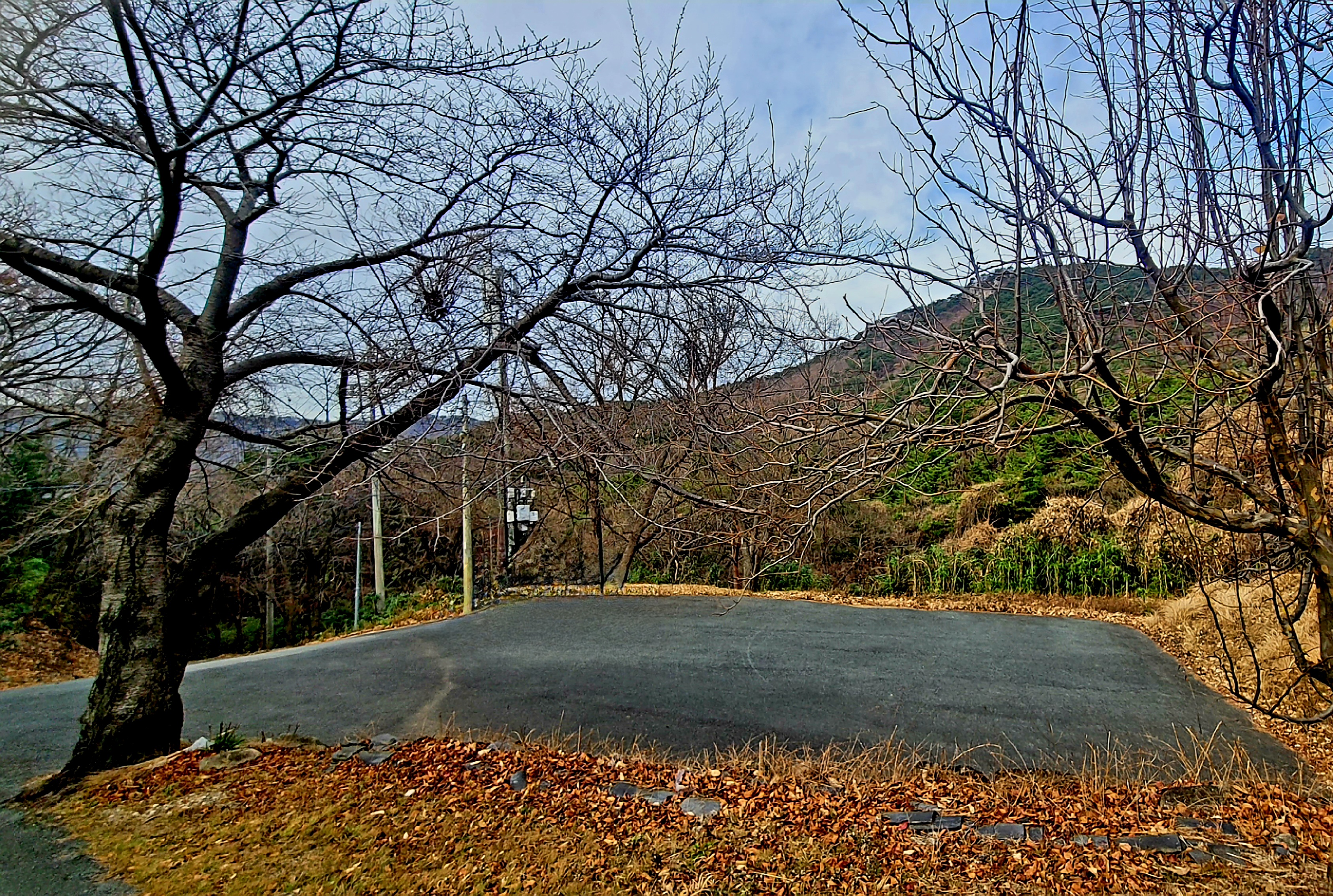 겨울이라 텃밭엔 시금치 종류만 보인다. 사천왕문을 지나 산 높은 곳에서 보는 텃밭이 정겹게 느껴진다. 뒤쪽 신어산 능선이 너무 아름답다. 봄에 오면 곳곳에 벚꽃과 함께 피어나는 옅은 새싹으로 감탄이 절로 나는 전경이다.